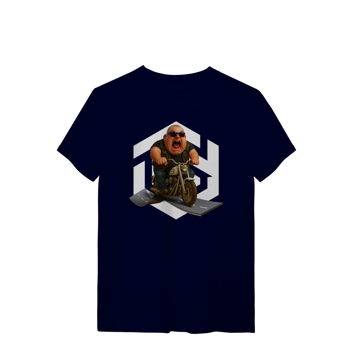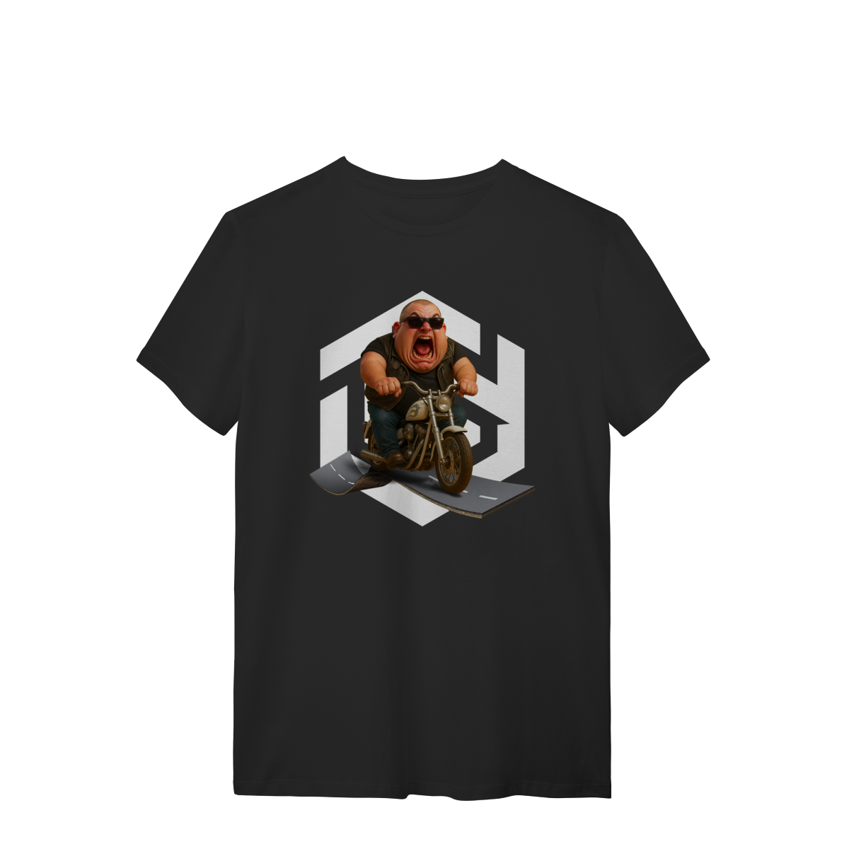 Se você é daqueles que gosta de estilo com humor escrachado, essa é a peça perfeita. A estampa traz um motoqueiro caricato, acima do peso, acelerando uma chopper com cara de louco gritando de emoção. Inspirada no universo biker, mas com um toque exagerado no melhor estilo, essa camiseta é irreverente, divertida e impossível de passar despercebida.