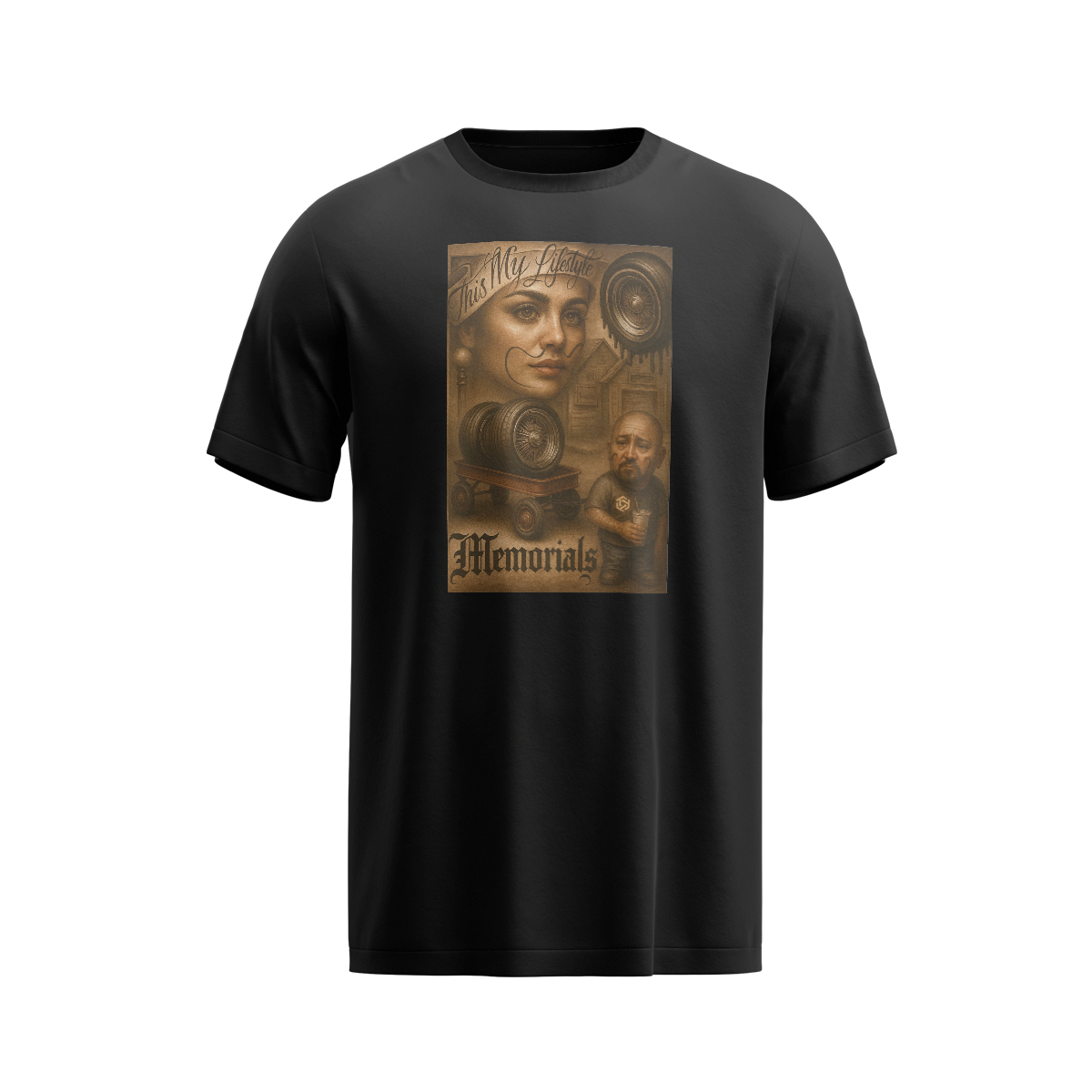 Arte com inspiração chicana e memorial, trazendo traços realistas e marcantes que representam estilo de vida, memória e identidade cultural. A estampa This My Lifestyle – Memorials une o peso da tradição ao visual urbano, criando uma peça forte e cheia de significado. Camiseta premium da Trapos Ink, feita para quem vive a rua com autenticidade e carrega sua história no peito.